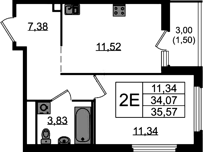 - Площадь35,57 м2