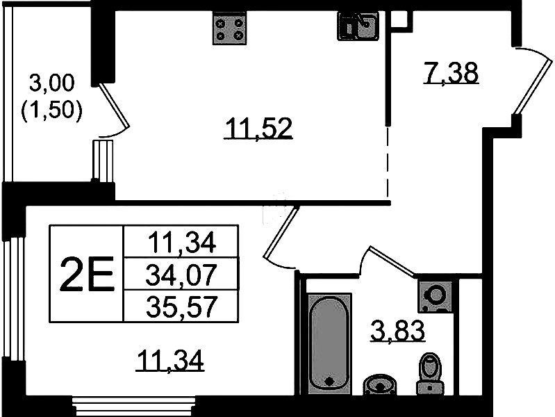 • Площадь35,57 м2