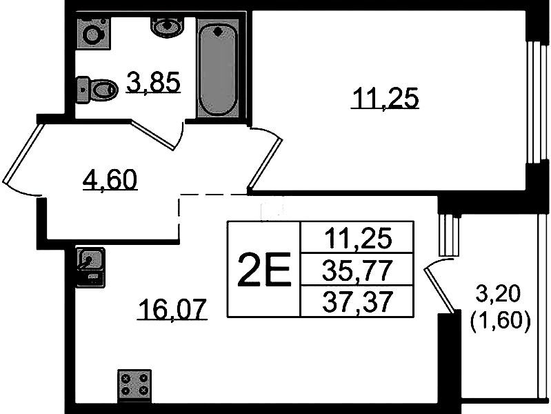 Однокомнатная квартира на 15-ом этаже 37,37 кв.м