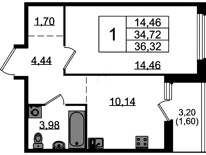 - Площадь36,32 м2