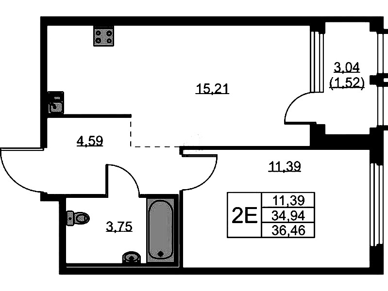 Однокомнатная квартира на 14-ом этаже 36,46 кв.м