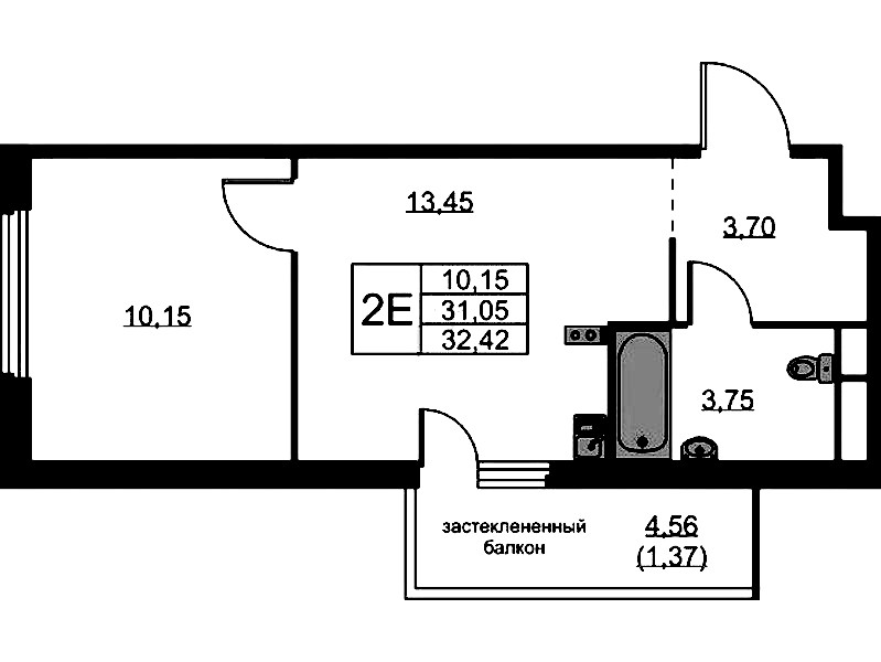 Однокомнатная квартира на 14-ом этаже 32,42 кв.м