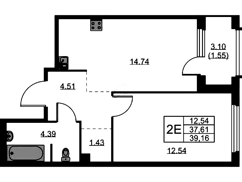 • Площадь39,16 м2