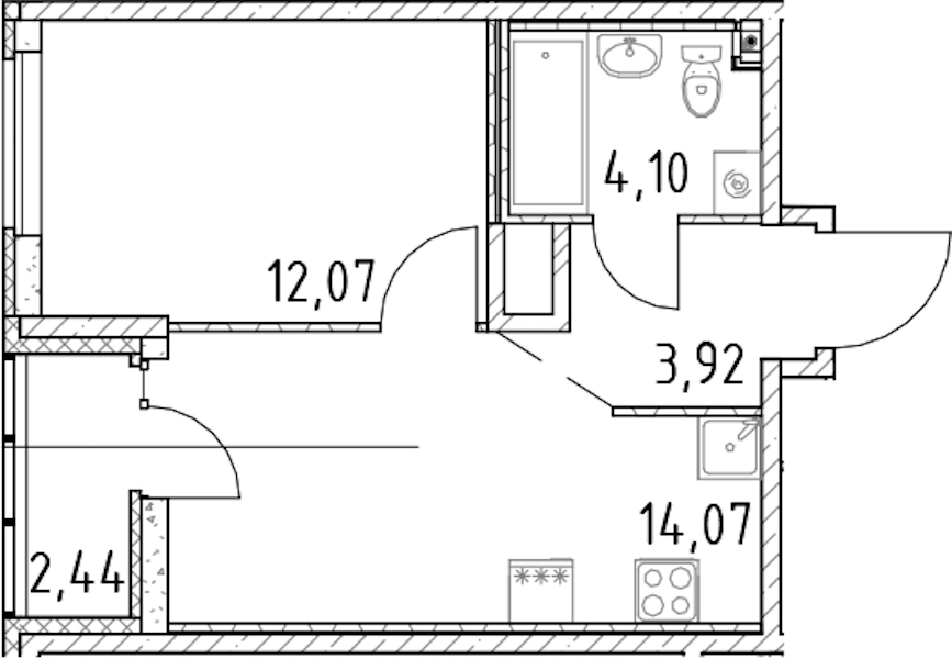 Однокомнатная квартира на 23-ем этаже 34,16 кв.м