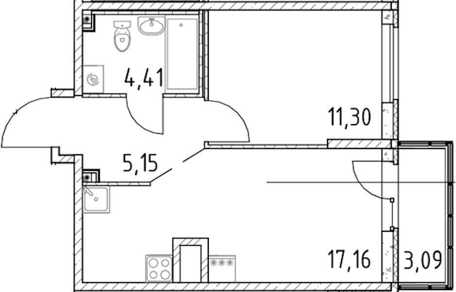 Однокомнатная квартира на 20-ом этаже 38,02 кв.м