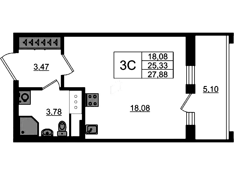 - Площадь25,33 м2
