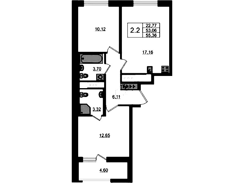 - Площадь53,06 м2