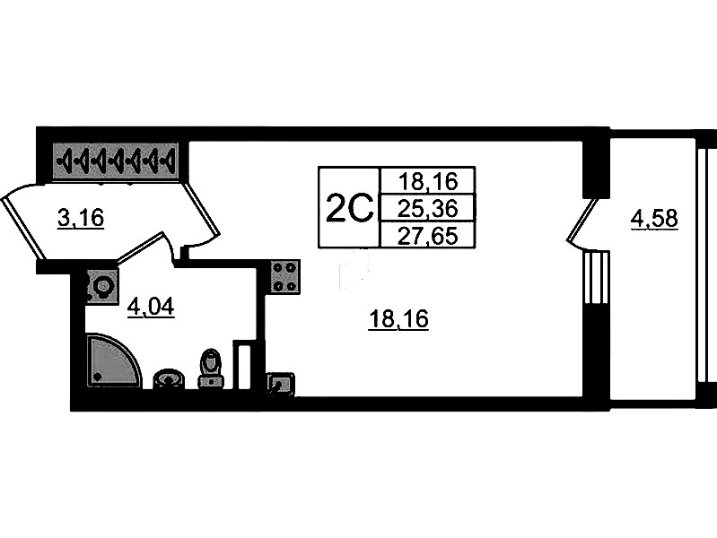 • Площадь25,36 м2