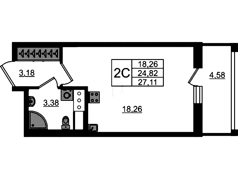 Квартира-студия на 17-ом этаже 24,82 кв.м