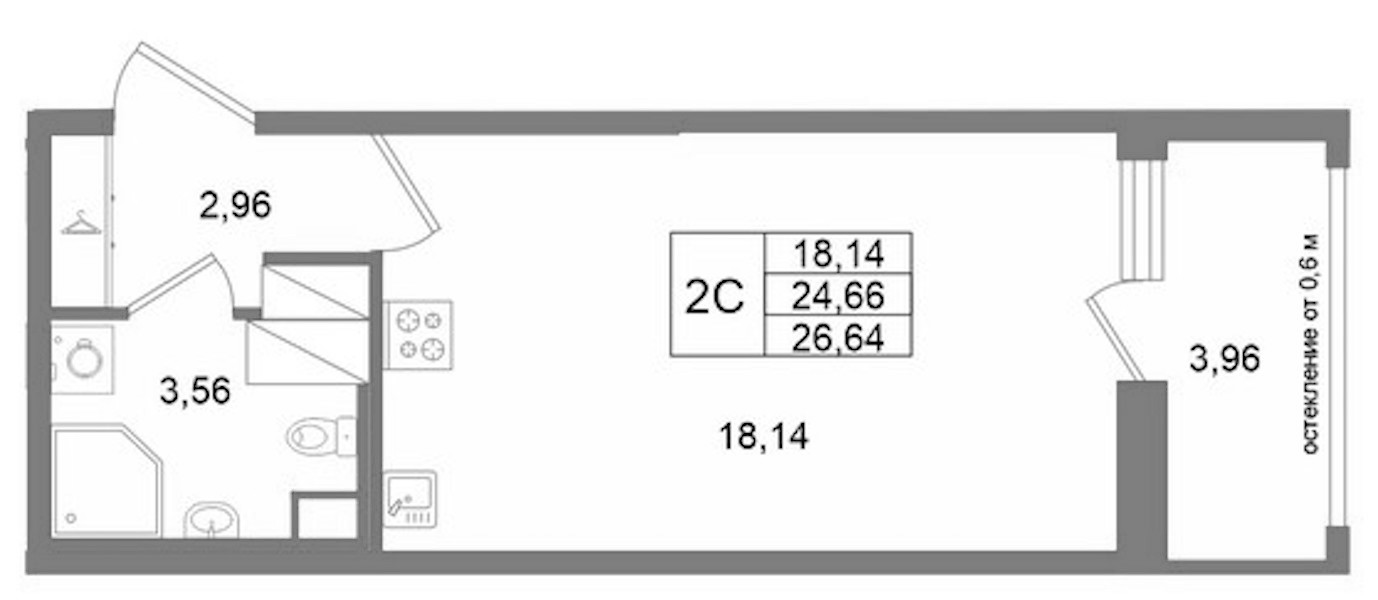 Квартира-студия на 23-ем этаже 24,66 кв.м
