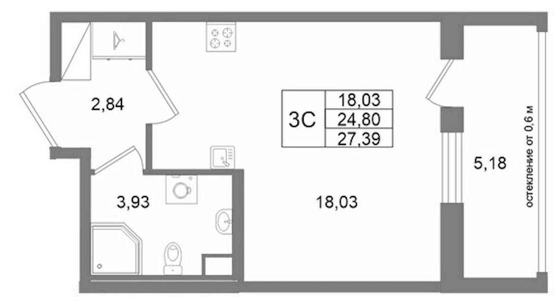 Квартира-студия на 8-ом этаже 24,8 кв.м