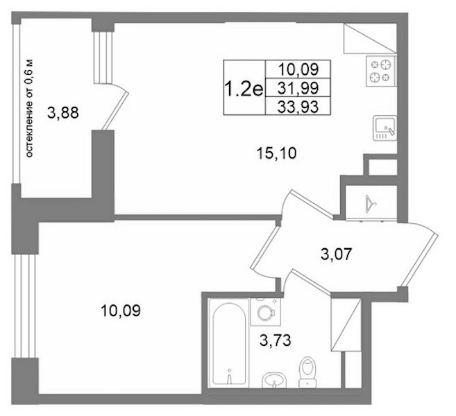 Однокомнатная квартира на 20-ом этаже 31,99 кв.м