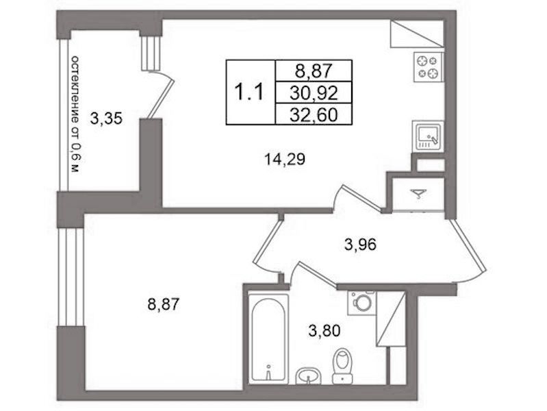 • Площадь30,92 м2