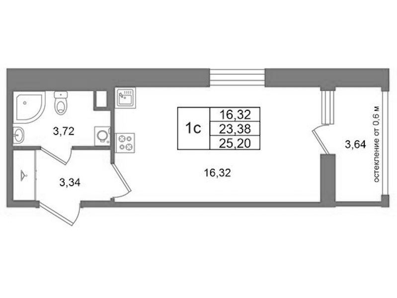 - Площадь23,38 м2