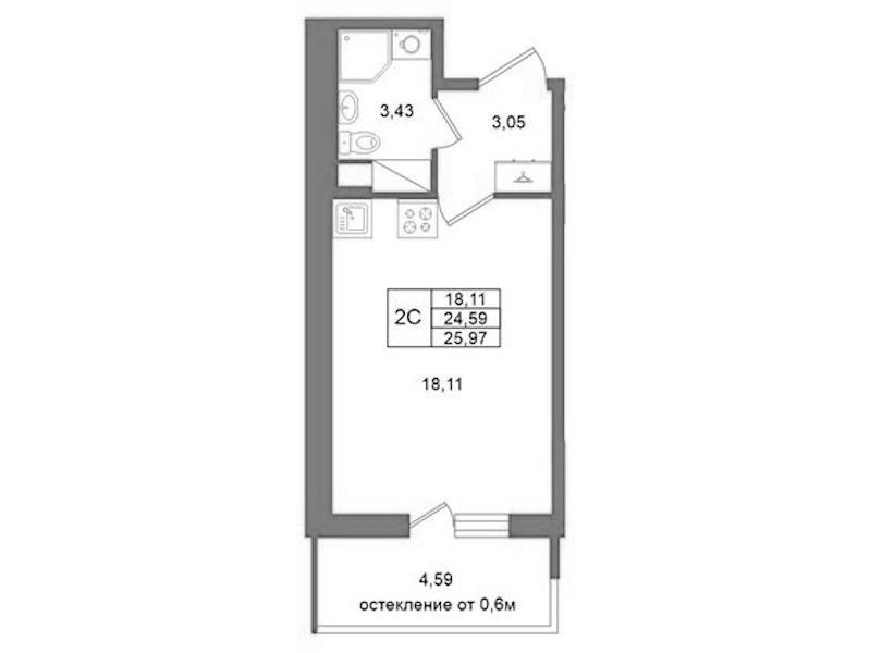 Квартира-студия на 9-ом этаже 24,59 кв.м
