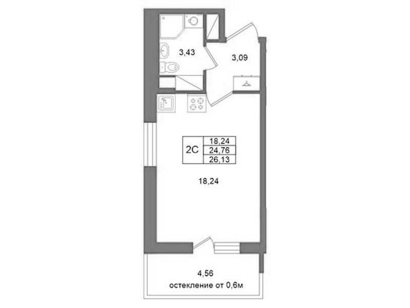 - Площадь24,76 м2