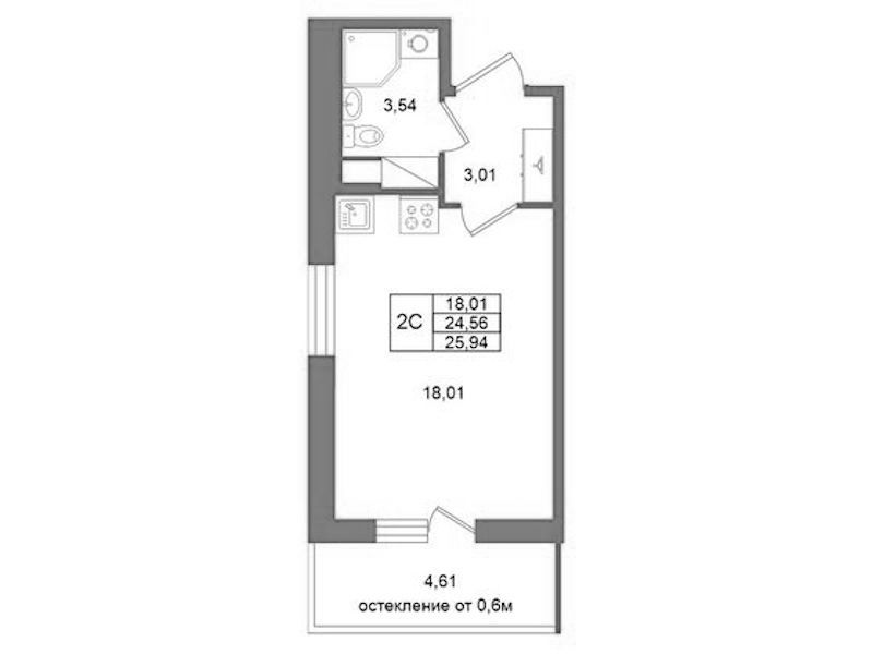 Квартира-студия на 6-ом этаже 24,56 кв.м