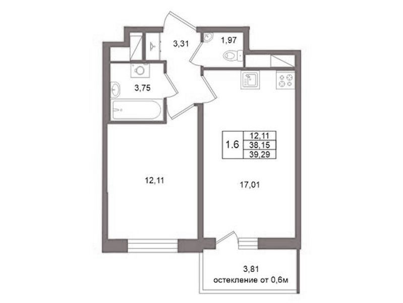• Площадь38,15 м2