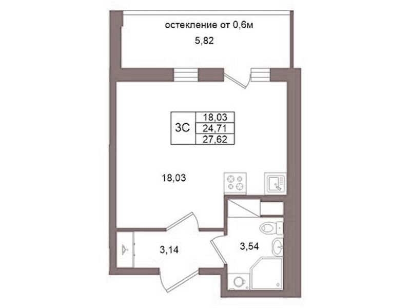 - Площадь24,71 м2