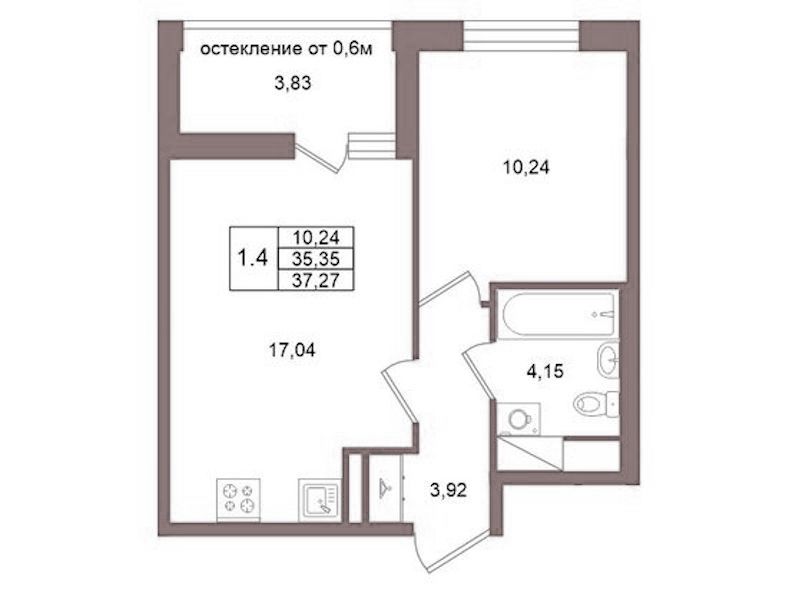 • Площадь35,35 м2