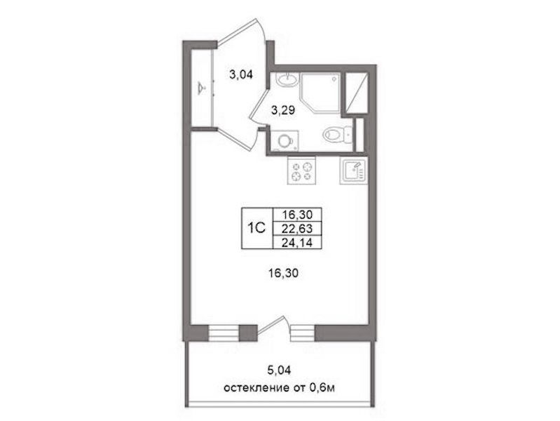 Квартира-студия на 13-ом этаже 22,63 кв.м