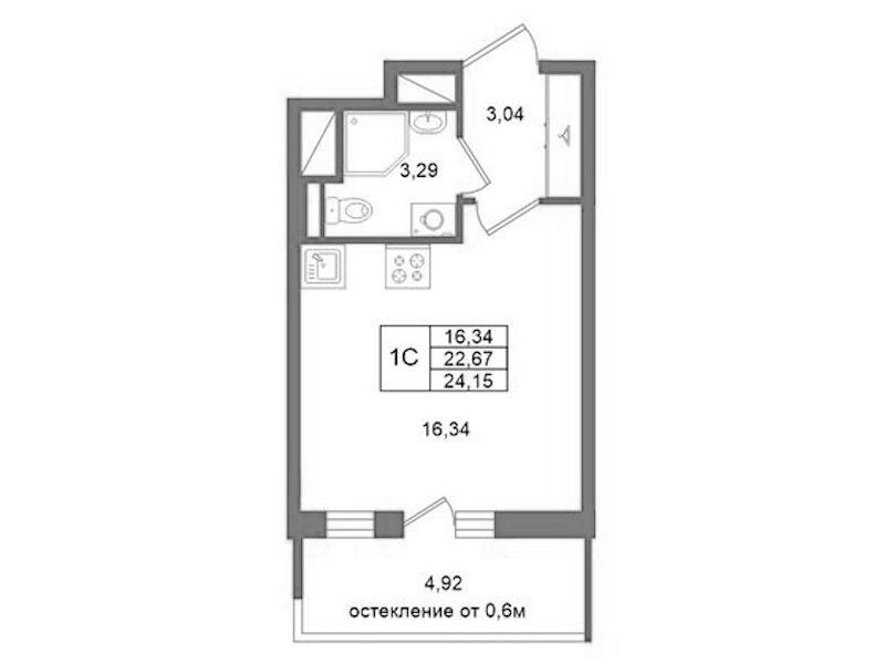 Квартира-студия на 19-ом этаже 22,67 кв.м