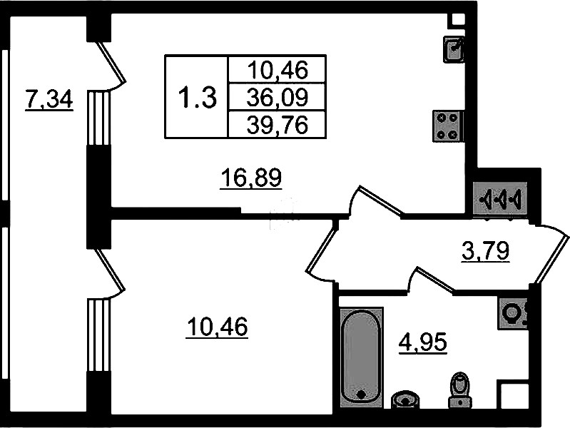 Однокомнатная квартира на 2-ом этаже 36,09 кв.м