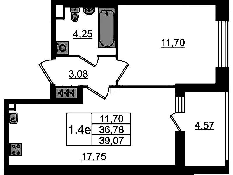 Однокомнатная квартира на 1-ом этаже 36,78 кв.м