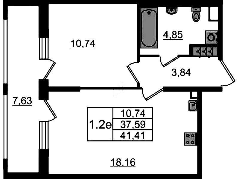 Однокомнатная квартира на 1-ом этаже 37,59 кв.м