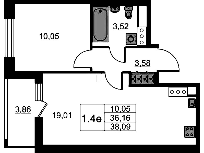 - Площадь36,16 м2