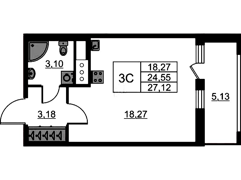 - Площадь24,55 м2