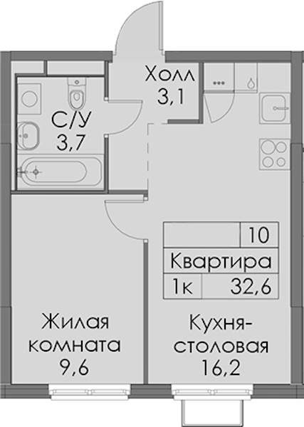 - Площадь32,6 м2