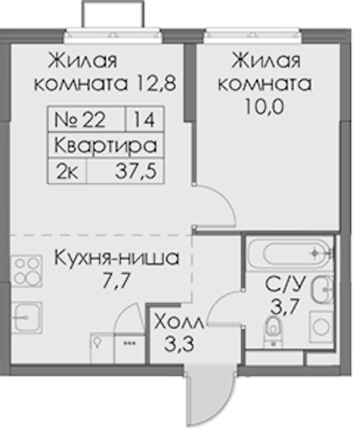 • Площадь37,5 м2