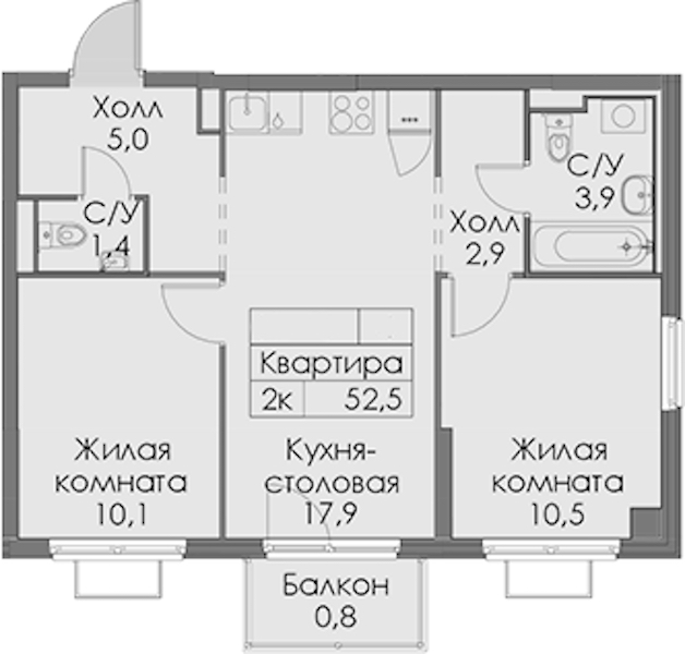 • Площадь52,5 м2