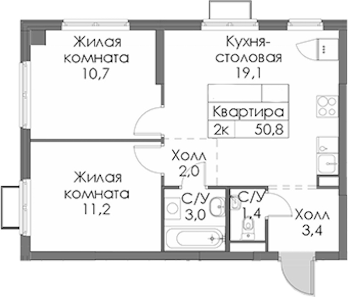 - Площадь51,6 м2