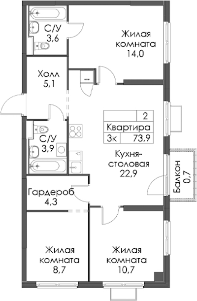 - Площадь73,9 м2
