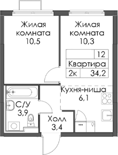 - Площадь34,2 м2