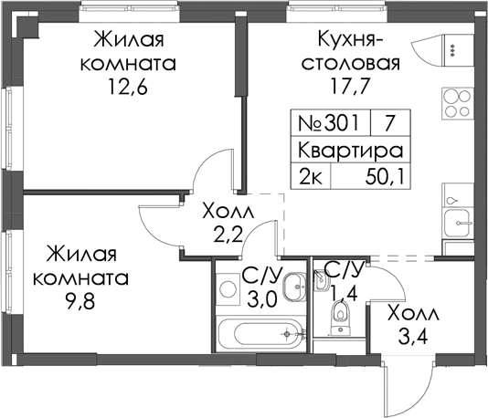 • Площадь50,1 м2
