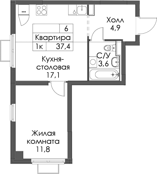 - Площадь37,4 м2