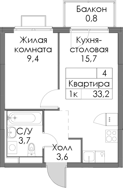 - Площадь33,2 м2