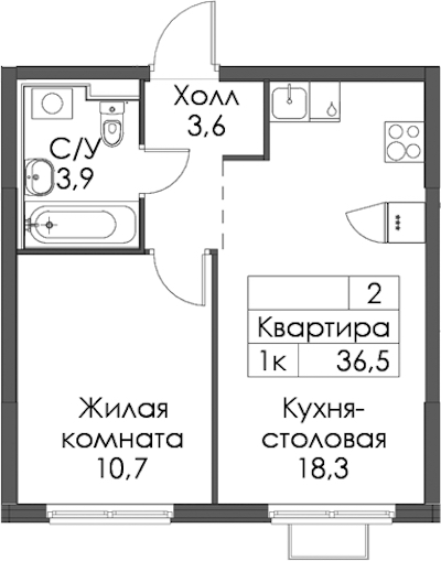 - Площадь36,5 м2