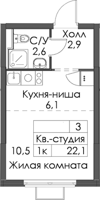 - Площадь22,1 м2