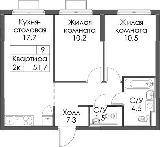 • Площадь51,7 м2