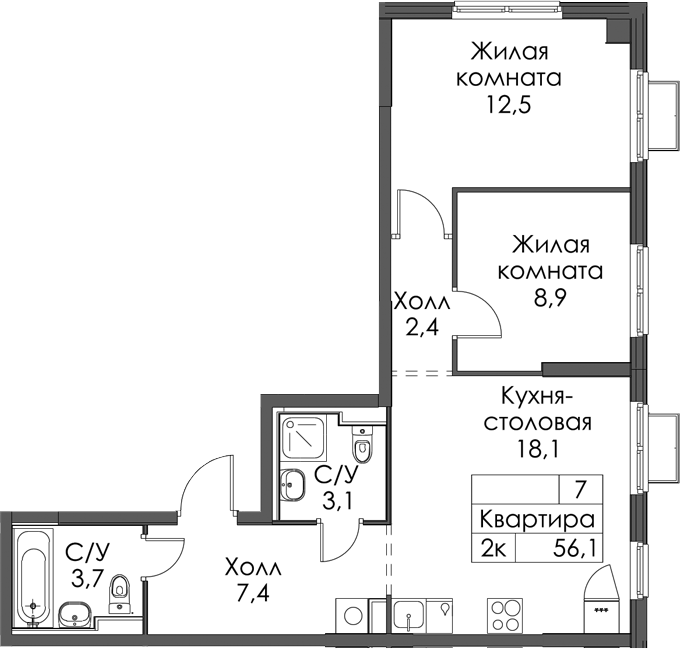- Площадь56,1 м2