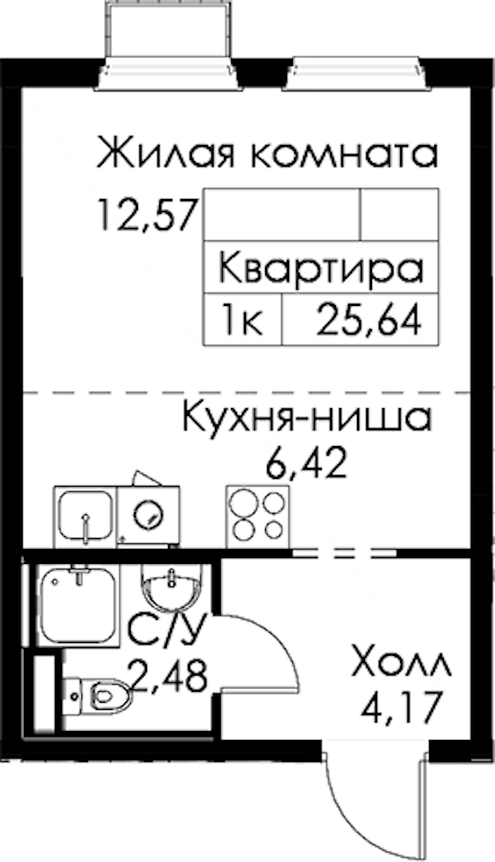 • Площадь25,64 м2