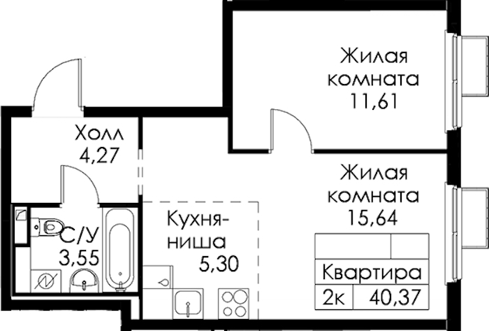 - Площадь40,37 м2
