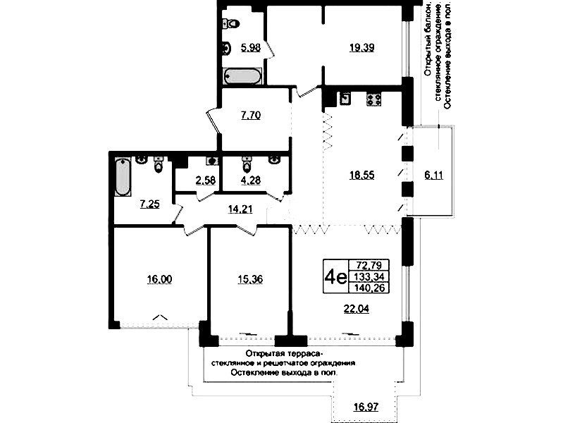 Четырёхкомнатная квартира на 5-ом этаже 133,34 кв.м