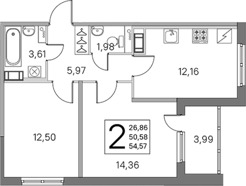 - Площадь50,58 м2