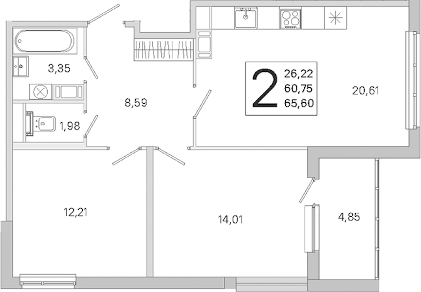 • Площадь60,75 м2
