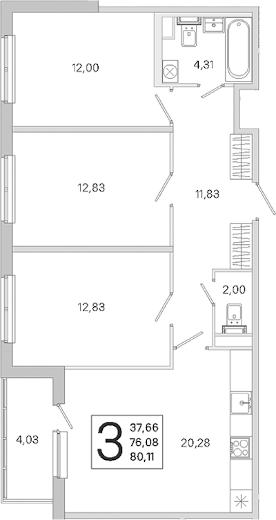 - Площадь76,08 м2